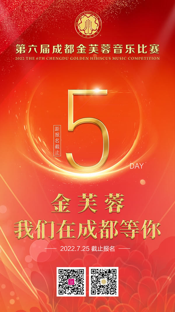 距第六届成都金芙蓉音乐比赛初赛作品提交截止日仅5天。冲吧,未来在国际音乐舞台上发光发亮的音乐人们,这个夏天和成都一起逐梦“金芙蓉”!